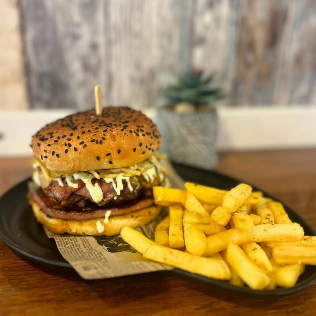 Cuando el hambre aprieta, nuestras hamburguesas son la elección perfecta. Preparadas con carne de primera calidad y combinaciones únicas, cada bocado es una explosión de sabor. Además, ofrecemos una selección de platos principales, ideales para un almuerzo o cena más consistente, siempre con ingredientes frescos y de temporada.